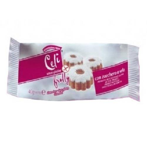 Celì Frolly Dolcetti di pastafrolla con zucchero a velo. Prodotto dietetico senza glutine. Indicato per soggetti intolleranti al glutine.