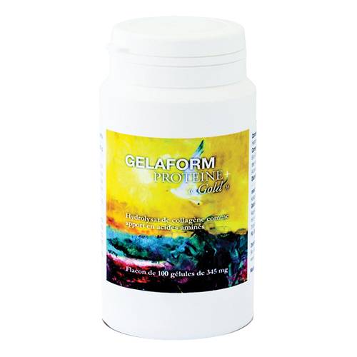 Gelaform Proteine + Gold Gelatina alimentare speciale ad elevata purezza, naturale al 100% in capsule, non contiene né grassi né carboidrati, ma solo ed esclusivamente aminoacidi. È particolarmente ricca di aminoacidi essenziali: infatti, ne contiene il 20 % tra Prolina e Idrossiprolina, indispensabili per il ricambio del collagene e della cartilagine.