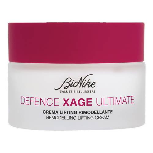 DEFENCE XAGE ULTIMATE LIFTING RIMODELLANTE - CREMA Crema dalla texture setosa e leggera, grazie al complesso Rejuvenate SGF, stimola la sintesi e la corretta organizzazione degli elementi chiave della matrice extra-cellulare e i principali fattori di crescita della pelle. Associato a genisteina, isoflavone dalle proprietà ridensificanti e a uno speciale lipodipeptide dall’azione anti-gravità, contrasta il rilassamento cutaneo e i segni d’invecchiamento più accentuati anche legati a carenze ormonali. Prodotto altamente tollerabile, senza glutine, profumo e conservanti; testato per il nichel.