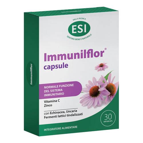 IMMUNILFLOR Integratore alimentare che favorisce le naturali difese dell'organismo e delle prime vie respiratorie. La naturcaps è costituita da una fibra vegetale ottenuta dalla fermentazione della tapioca, quindi completamente naturale e priva di coloranti artificiali, facilmente digeribile, adatta a vegani e vegetariani.