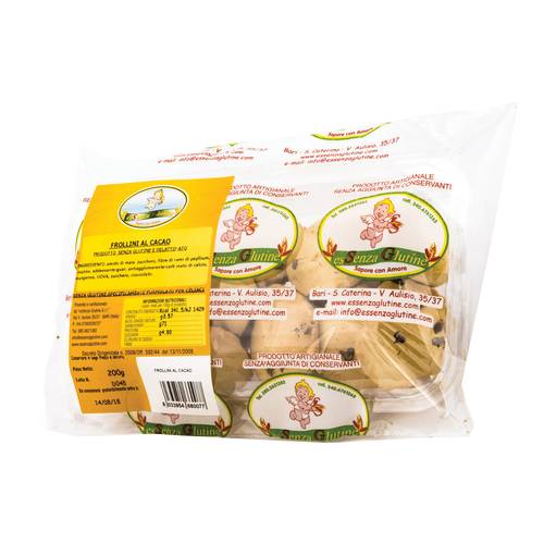 Frollini al Cacao Frollini con goncce di cioccolato, indicati per persone celiache, senza glutine.