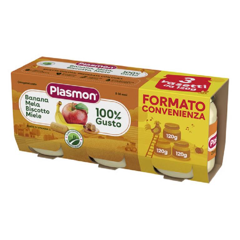 PLASMON Omogeneizzato Banana Mela Biscotto 3x120 g