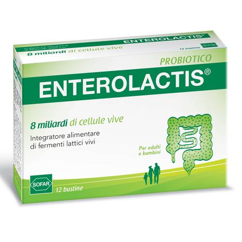 PROBIOTICO ENTEROLACTIS Integratore alimentare di fermenti lattici vivi. L’apporto di probiotici come il Lactobacillus casei DG contenuto in Enterolactis è indicato nel ripristino della flora batterica intestinale compromessa da squilibri alimentari e terapie antibiotiche.